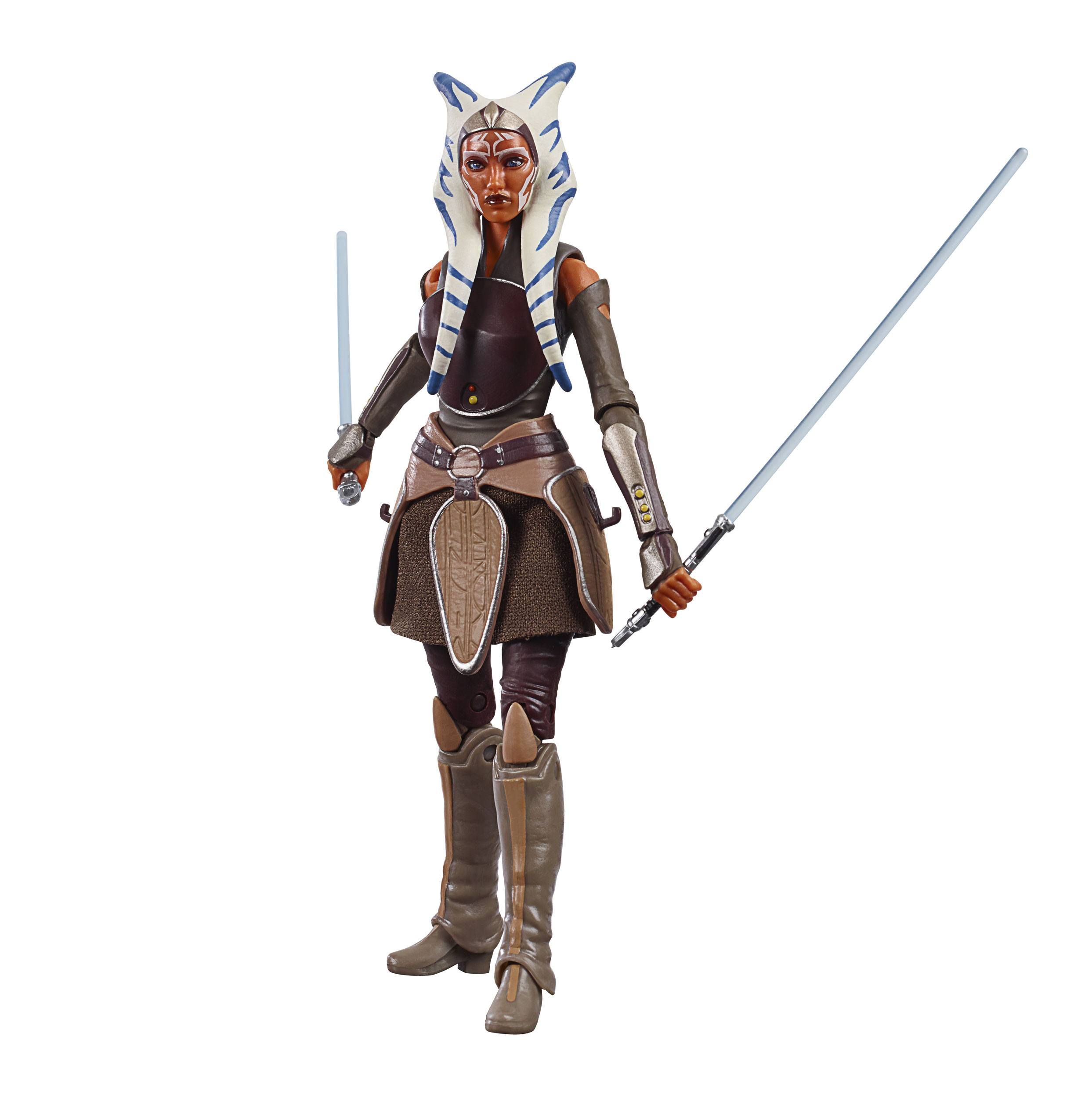 Voici une figurine d’Ahsoca Tano, telle qu’elle apparaît dans la série animée Star Wars Rebels. En effet, la jeune padawan, originaire de la planète Shili, est unique en son genre. Les tentacules et cornes qui la caractérisent et sont confondus avec une coiffure, sont un signe de son appartenance à l’espèce des Togruta. Il s’agit d’ailleurs d’organes qui augmentent sa sensibilité à la force. A noter que ce personnage est surnommé Chipie par Anakin Skywalker… son maître d’apprentissage.