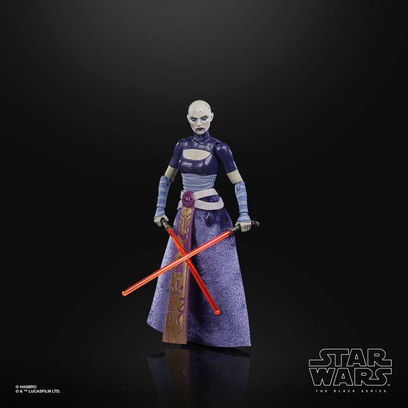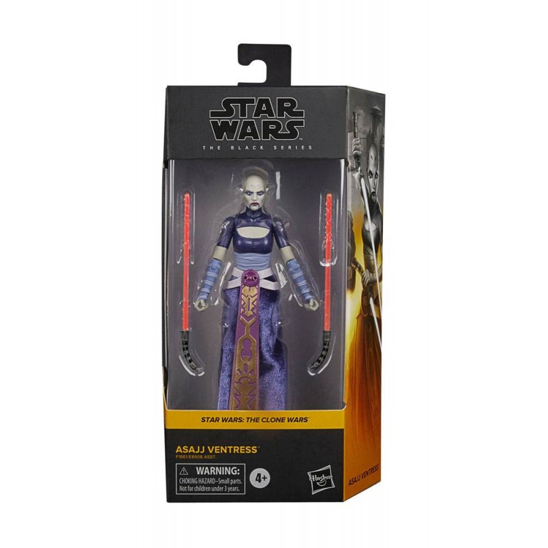 Cette figurine d’Asajj Ventress est intéressante car elle présente la jeune femme avec ses deux armes fétiches. En effet, ce personnage qui vient de Dathomir, est sensible à la force. Et c’est dans La guerre des clones qu’elle fait son apparition. Cette Zabrak a ici le crâne dégarni et des vêtements type samouraï.