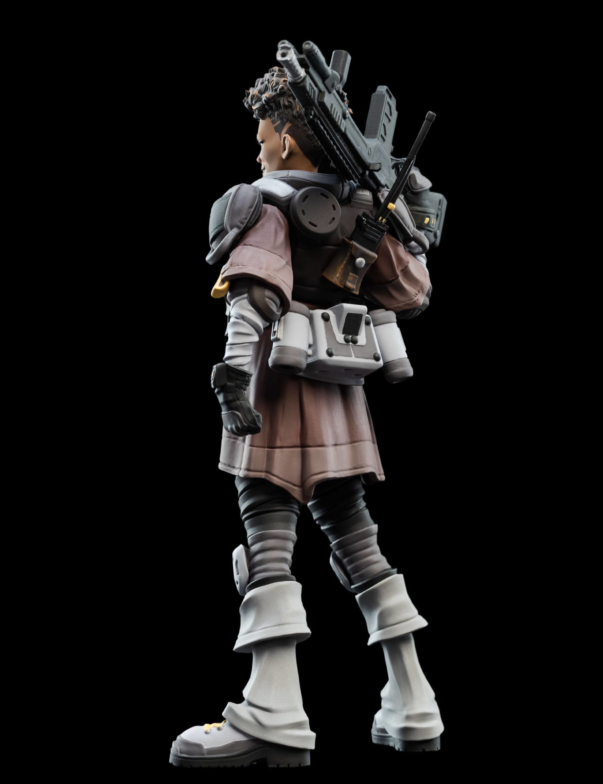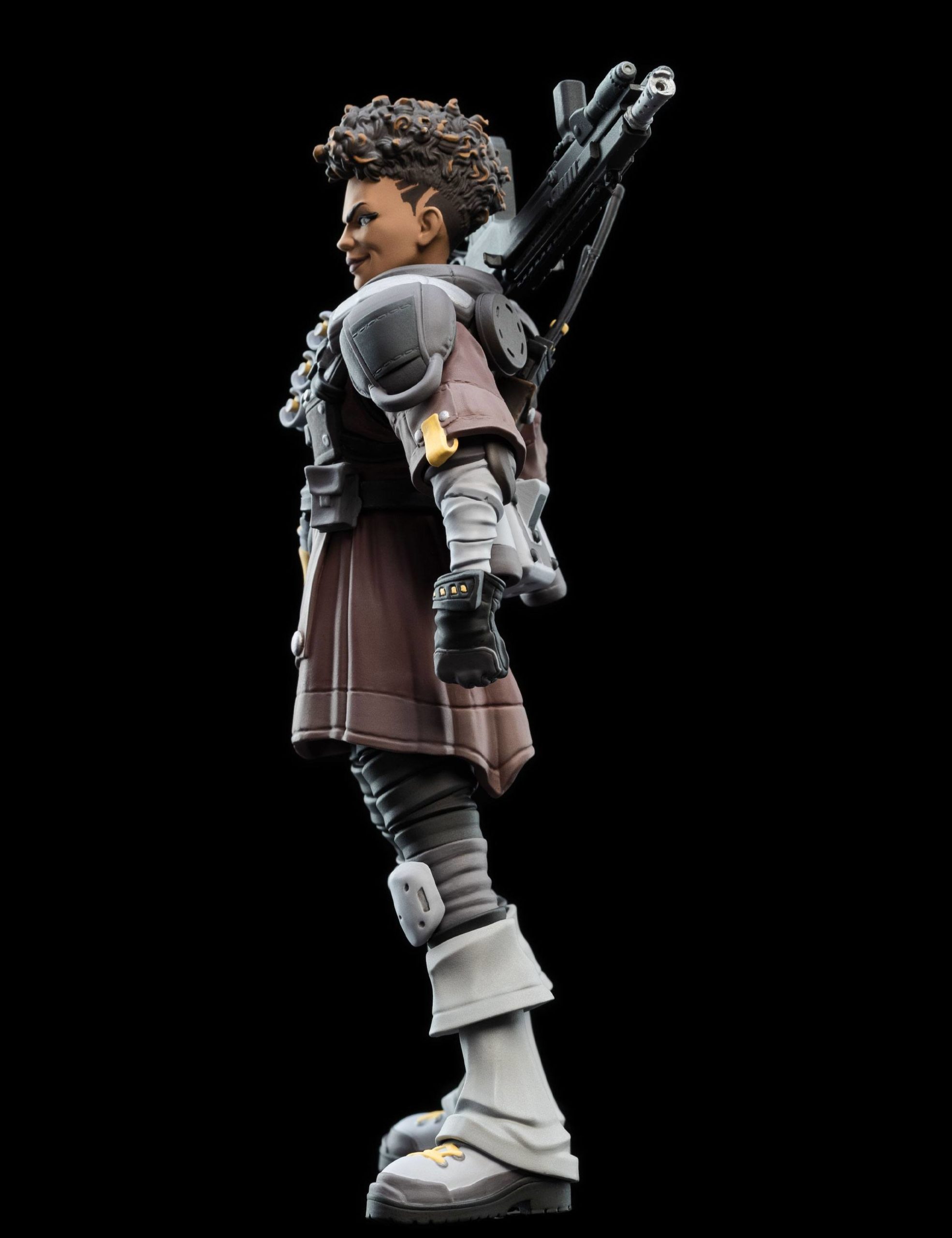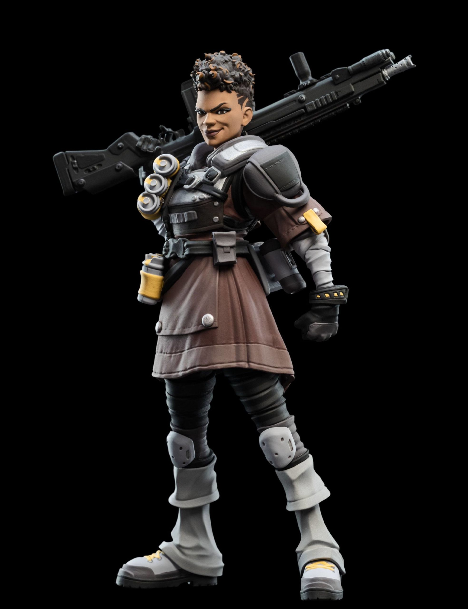 Bangalore Apex Legends est proposée ici en version figurine par le fabricant Weta. Cette réplique miniature, mini Epics, rend hommage à l’une des Légendes particulièrement populaire du jeu-vidéo Apex. C’est avant tout une militaire professionnelle, née pour le combat. Normal, elle baigne dans l’univers de l’Armée depuis sa tendre enfance et a suivi un destin tout tracé par son parents et ses frères. D’ailleurs sa figurine la montre lourdement armée. Son apparence austère et hostile, son accoutrement de militaire, ses armes, ne cadrent pas avec son prénom. Car, derrière cette guerrière se prénomme en réalité Anita Williams. Mais c’est sous le surnom de Bangalore que cette Legends d’Apex sévit.