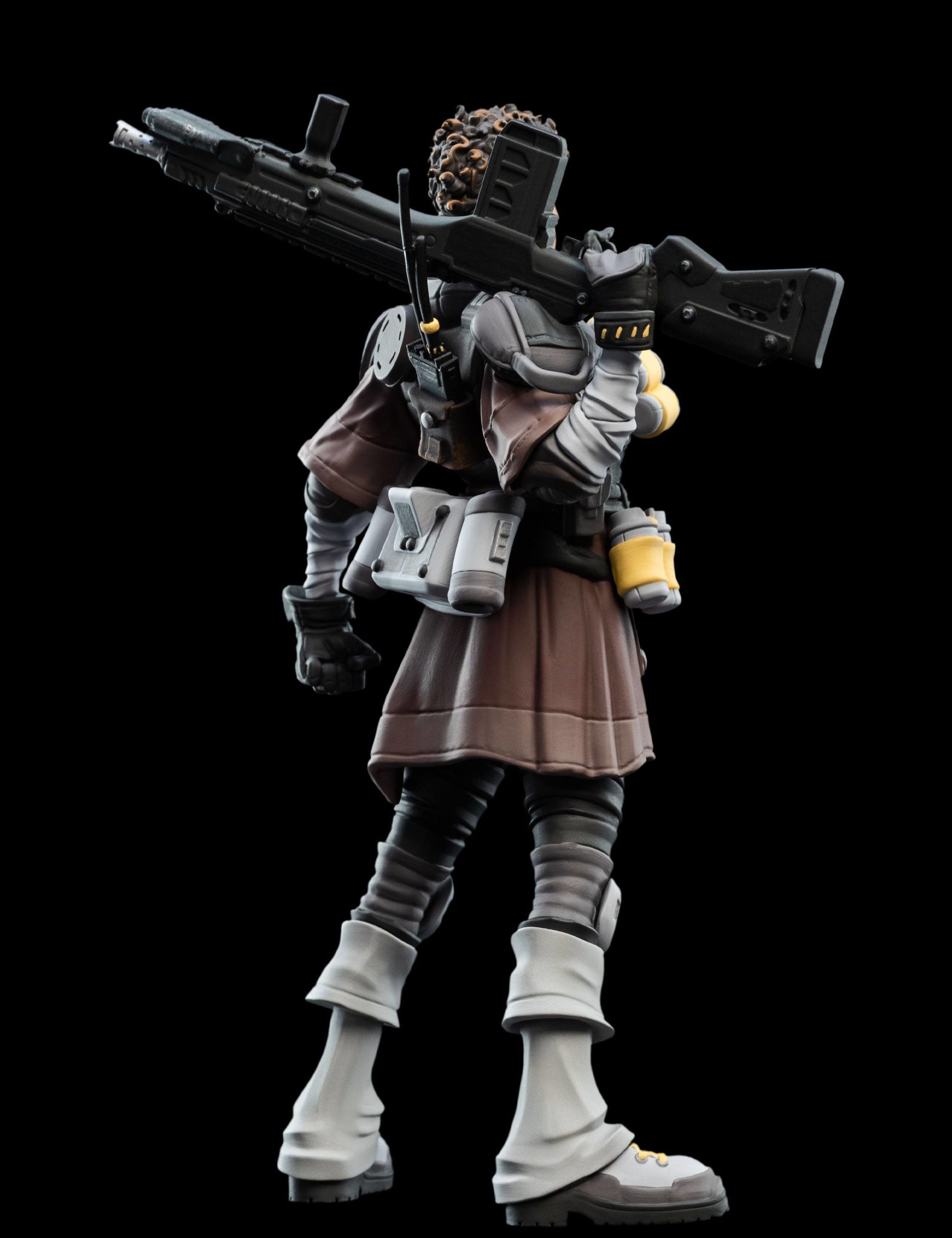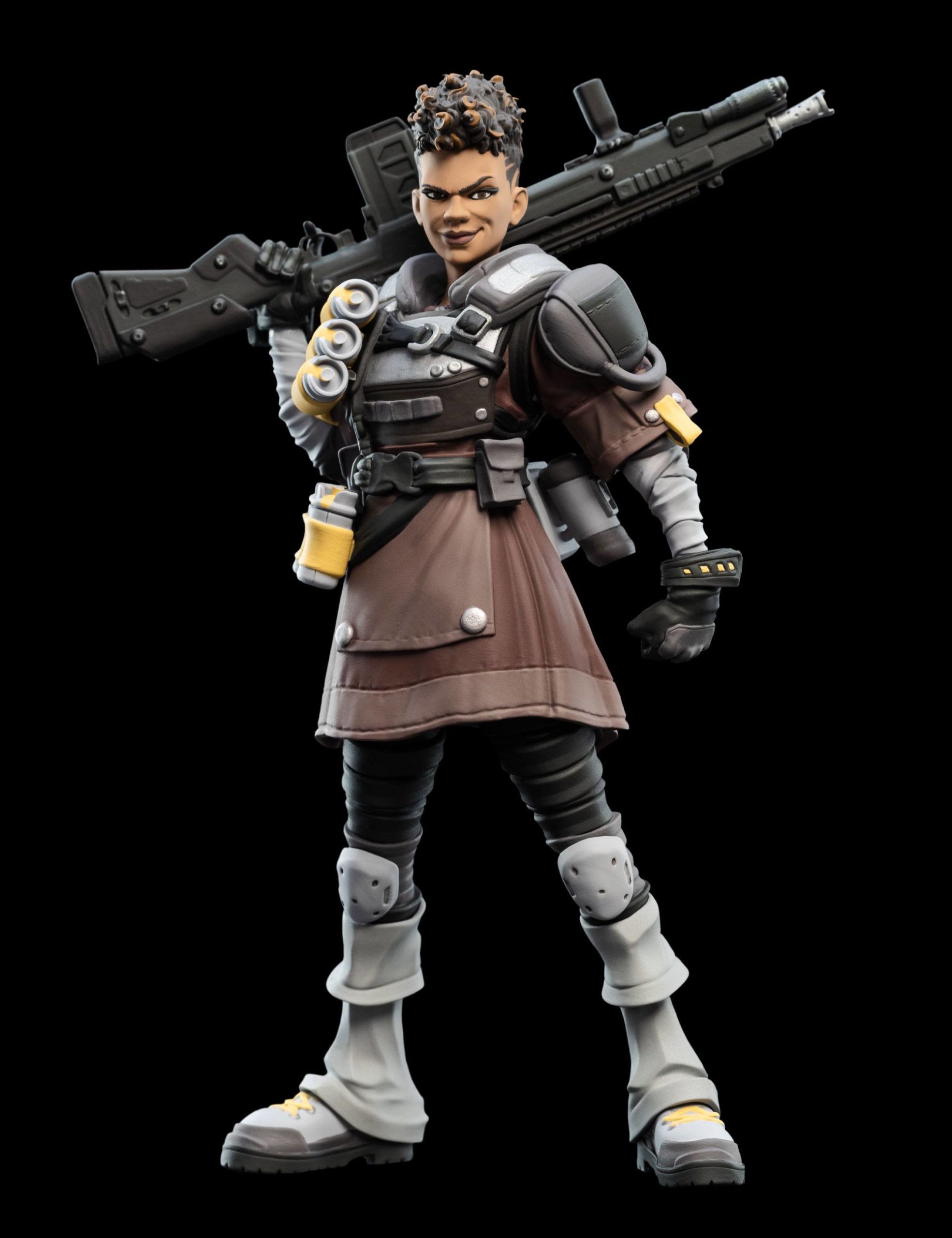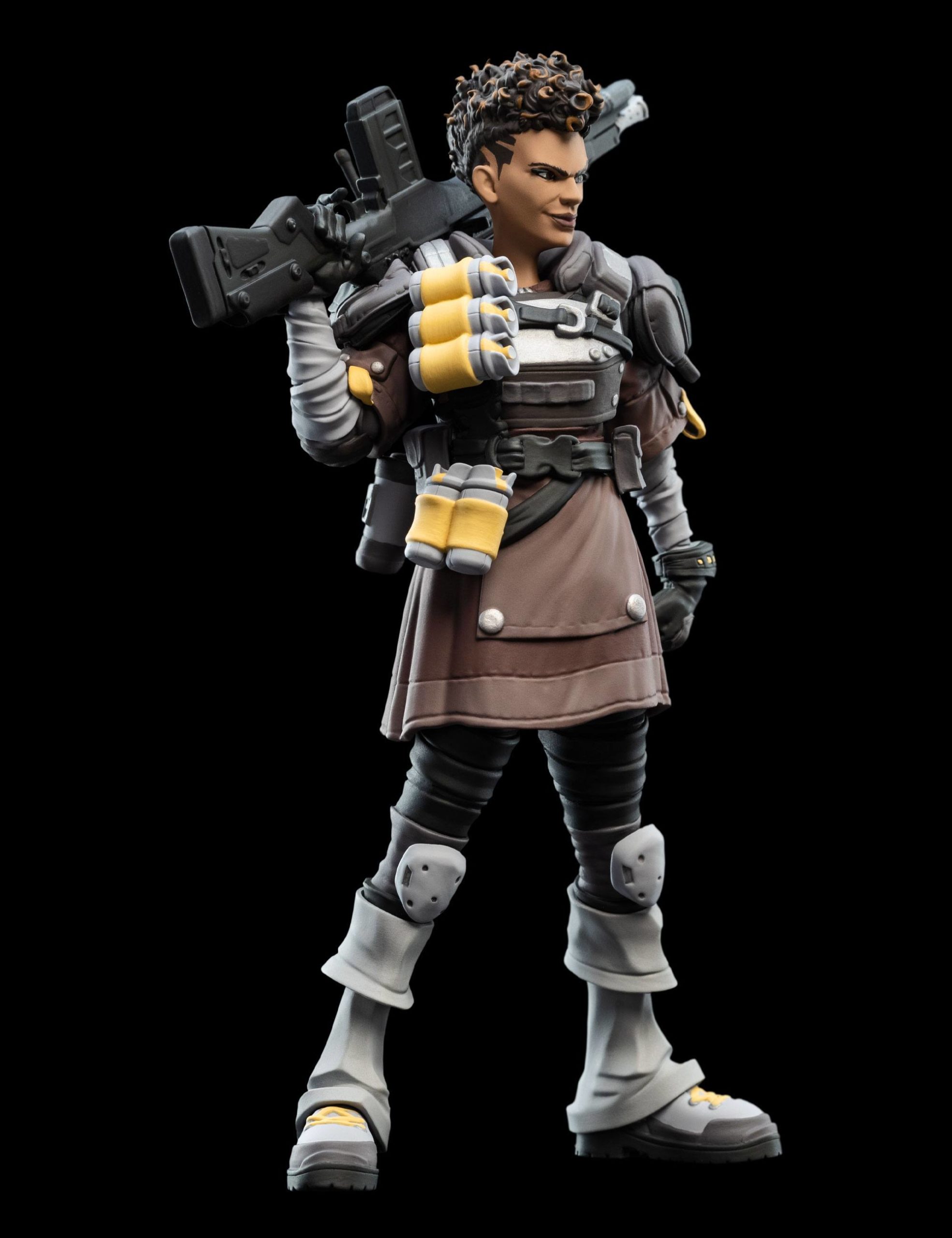 Bangalore Apex Legends est proposée ici en version figurine par le fabricant Weta. Cette réplique miniature, mini Epics, rend hommage à l’une des Légendes particulièrement populaire du jeu-vidéo Apex. C’est avant tout une militaire professionnelle, née pour le combat. Normal, elle baigne dans l’univers de l’Armée depuis sa tendre enfance et a suivi un destin tout tracé par son parents et ses frères. D’ailleurs sa figurine la montre lourdement armée. Son apparence austère et hostile, son accoutrement de militaire, ses armes, ne cadrent pas avec son prénom. Car, derrière cette guerrière se prénomme en réalité Anita Williams. Mais c’est sous le surnom de Bangalore que cette Legends d’Apex sévit.