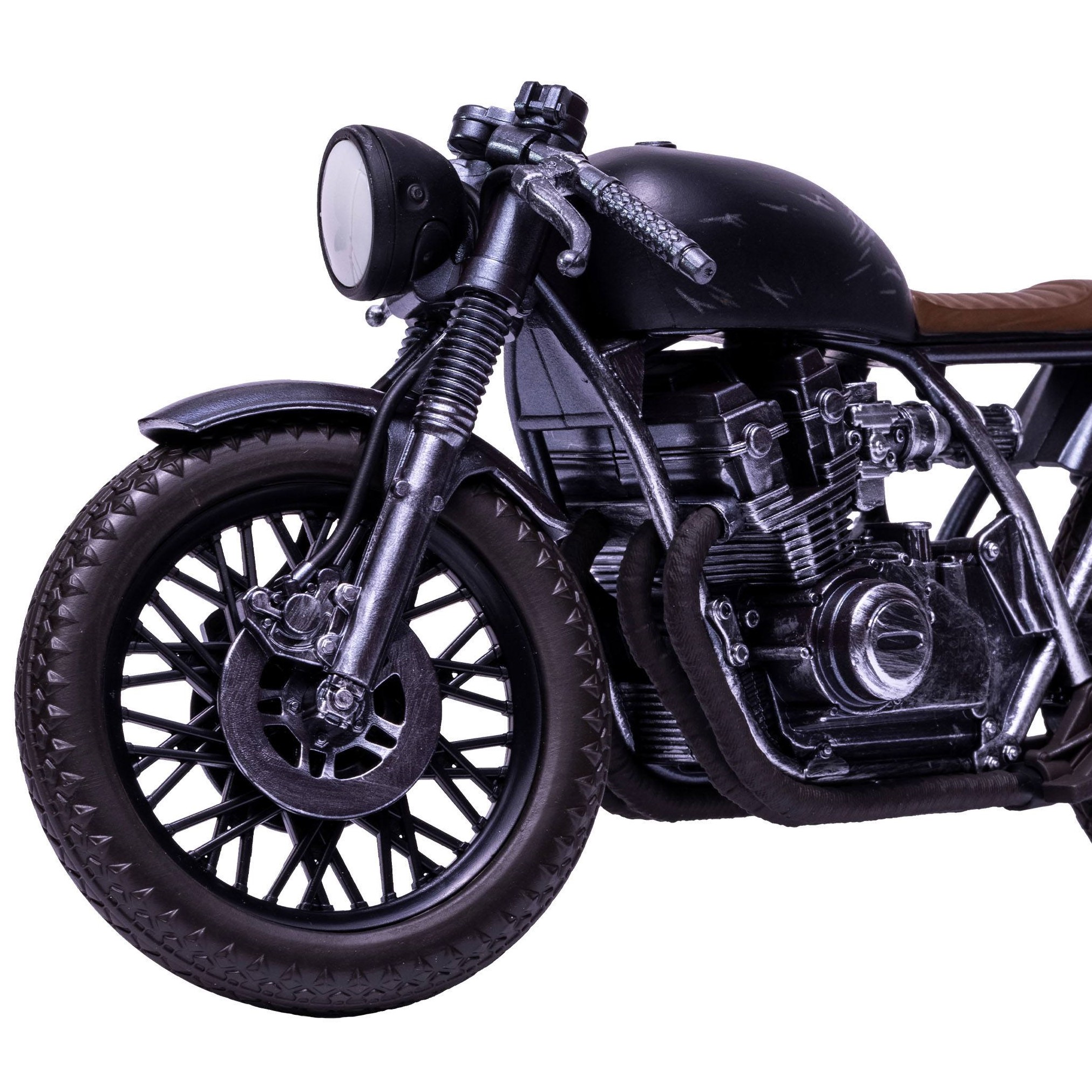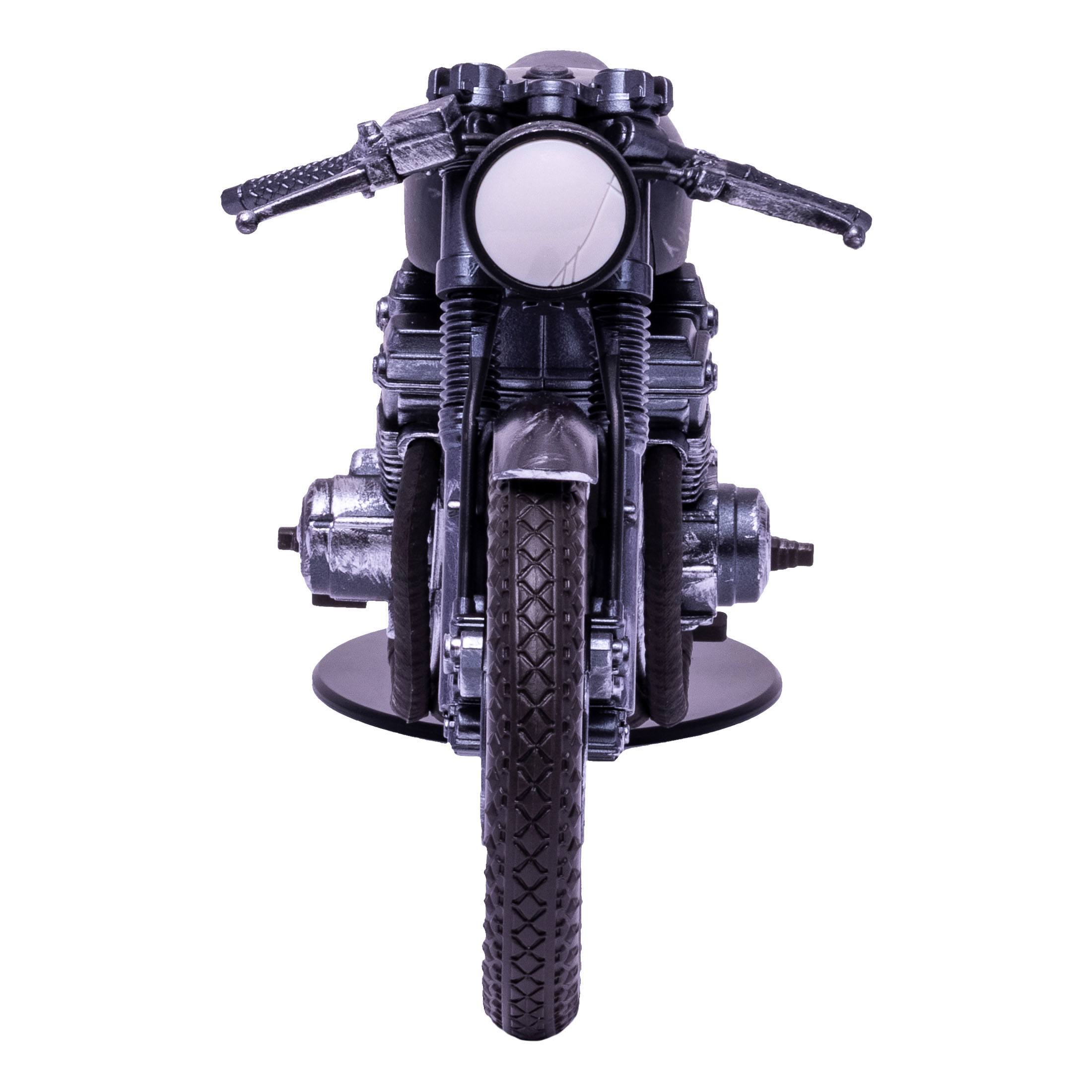 Voici la Drifter motorcycle Batman. En effet, dans le film The Batman (2022) Bruce Wayne peut se déplacer incognito dans tout Gotham. Il est d’ailleurs ainsi baptisé The Drifter, Le Vagabond. Et voici donc la moto « Drifter » inspirée de ce film DC. Une superbe réplique, avec, en prime, les roues et le guidon qui peuvent tourner. Bref, un bel accessoire qui dispose par ailleurs d’un socle et est livrée avec un casque. En revanche, la figurine de Batman n’est pas comprise et doit être achetée séparément.