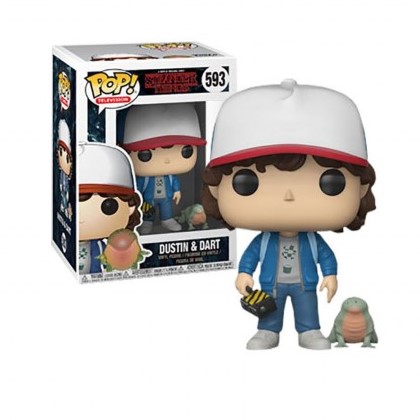 Dustin & Dart sont un improbable duo dans la saison 2 de série TV Stranger Things. Dustin, l’un des quatre de la bande d’adolescents, geek avant l’heure, est un personnage particulièrement attachant. Drôle, débrouillard, avec sa frimousse ronde et ses grands yeux, il est très charismatique. Il recueille une drôle de petite créature, qu’il surnomme Dart (D’Artagnan). Cette figurine Funko a pour originalité de nous présenter Dustin accompagné de son petit animal pas très domestique…