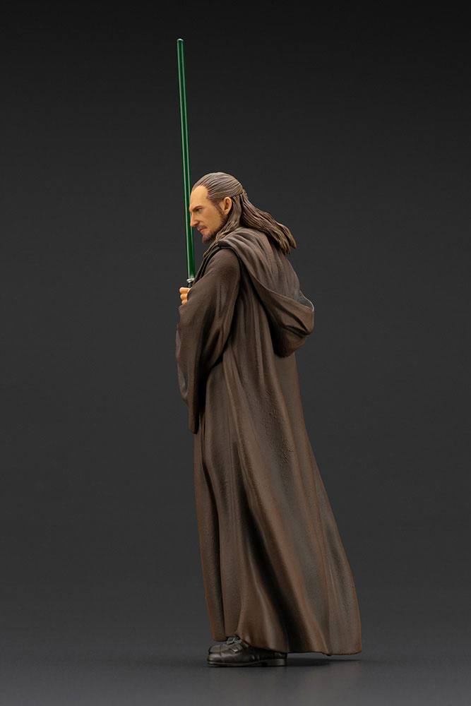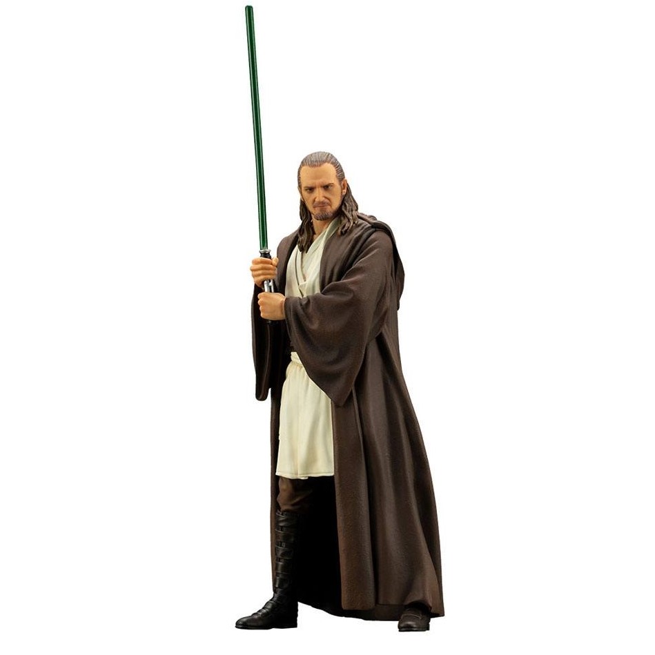 Dans Star Wars, Qui-Gon Jinn a le visage de l’acteur Liam Neeson. Et ce chevalier Jedi apparaît notamment dans La Menace Fantôme, en 1999. Sa statuette le représente fidèlement, avec sa petite barbe et ses cheveux longs coiffés en arrière. Sans oublier son arme favorite : son sabre laser. Ex padawan du comte Doku, Qui-Gon Jinn est aussi celui qui a été chargé de l’apprentissage d’Obi-Wan Kenobi. Et il dialogue toujours avec le sage maître Yoda. Voilà dont une figurine que tous les fans de la saga de La Guerre des Etoiles sauront apprécier à sa juste valeur. D’autant que ce personnage, natif de Coruscant, a un rôle important dans Star Wars. En effet, communique avec Maître Yoda et l’avertit au moment ou Anakin Skywalker se déchaîne contre les Tusken sur la planète Tatooine.