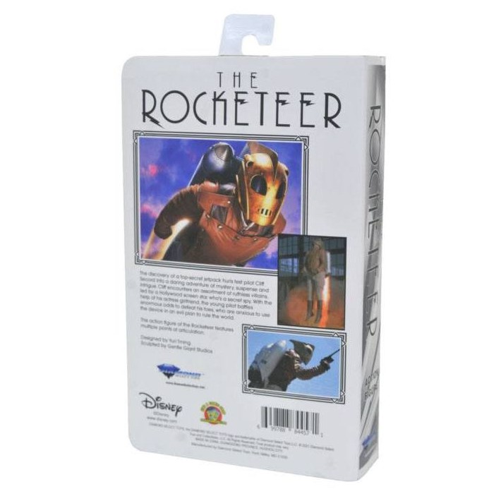 On l’aime ce Rocketeer avec son petit costume vintage. Et surtout sa fusée dorsale qui lui permet de voler. Un accessoire sympa pour un cascadeur aérien. Le package ici est drôlement chouette. En effet, la figurine de Cliff Secord, casqué, est livré dans un coffret assez élégant. Et en plus, il y a plusieurs accessoires et un socle. Tout cela pour un prix plus qu’attractif.