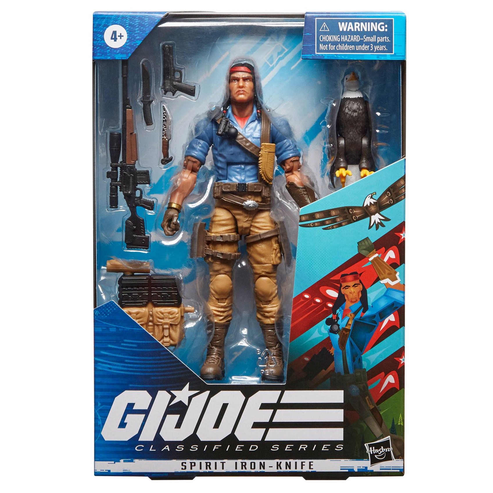 Avant d’être guérisseur et chaman, Charlie Iron-Knife, dit « Spirit » est un membre des G.I. Joe. Et sa figurine est plutôt une réussite. Notamment parce que l’amérindien, avec ses longues tresses noires, est vraiment bien détaillé et la réplique pleine de détails qui lui donnent presque apparence humaine. En plus il y a pas mal d’accessoires. Dont le fameux fusil sniper. Mais également Freedom, son oiseau de compagnie.
