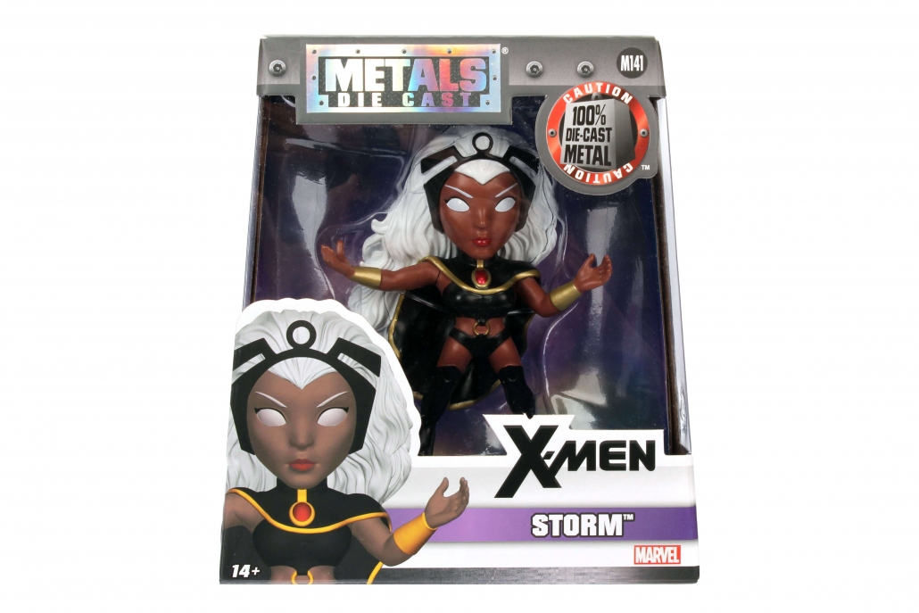Voici Storm en version Jada, en petit format et à petit prix. Avec ses longs cheveux blancs et son petit costume de X-Men.