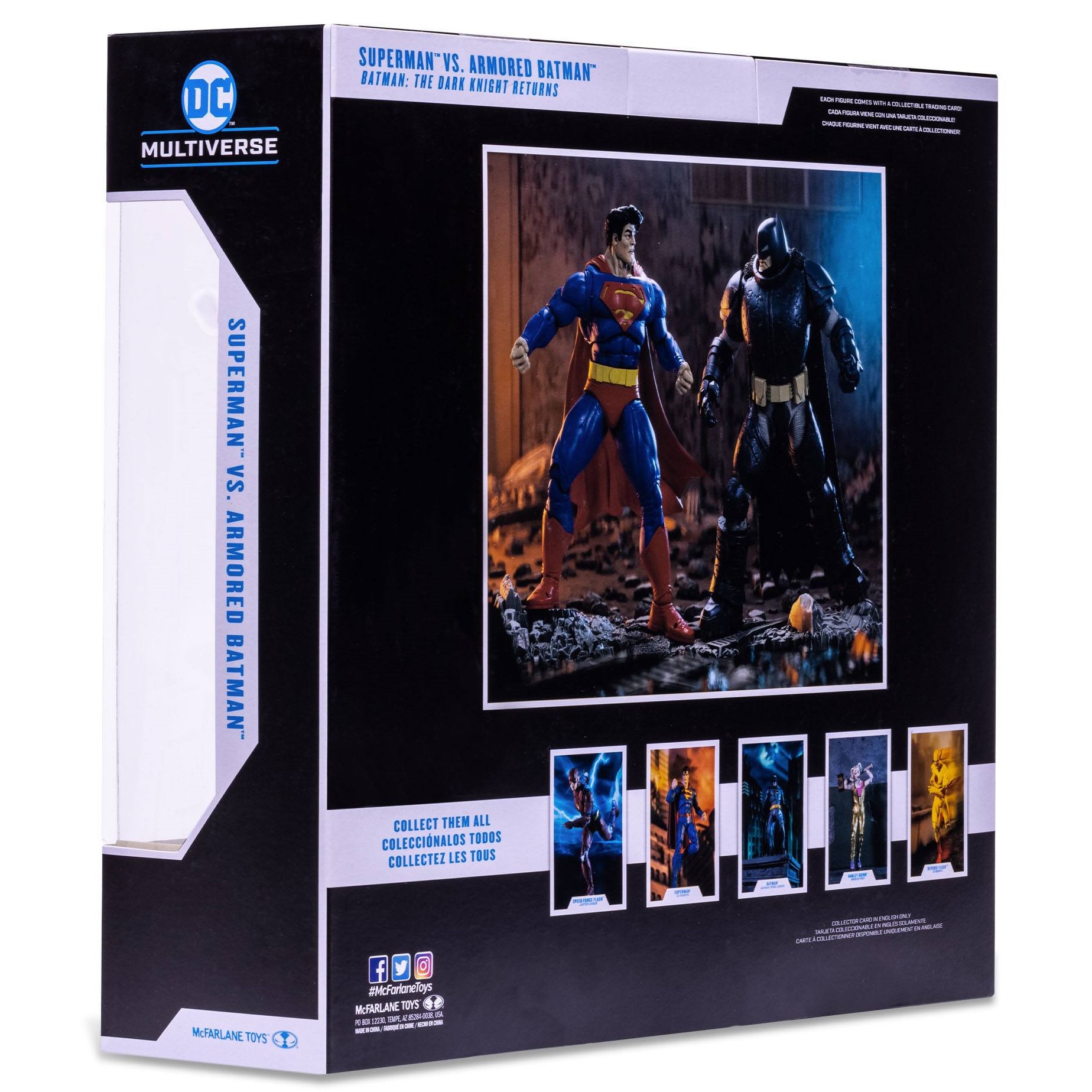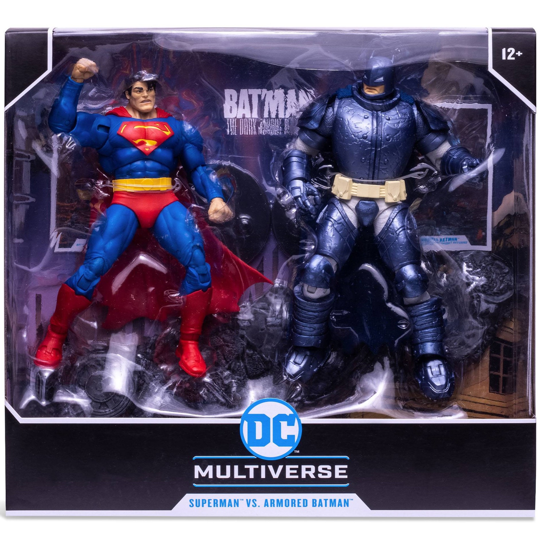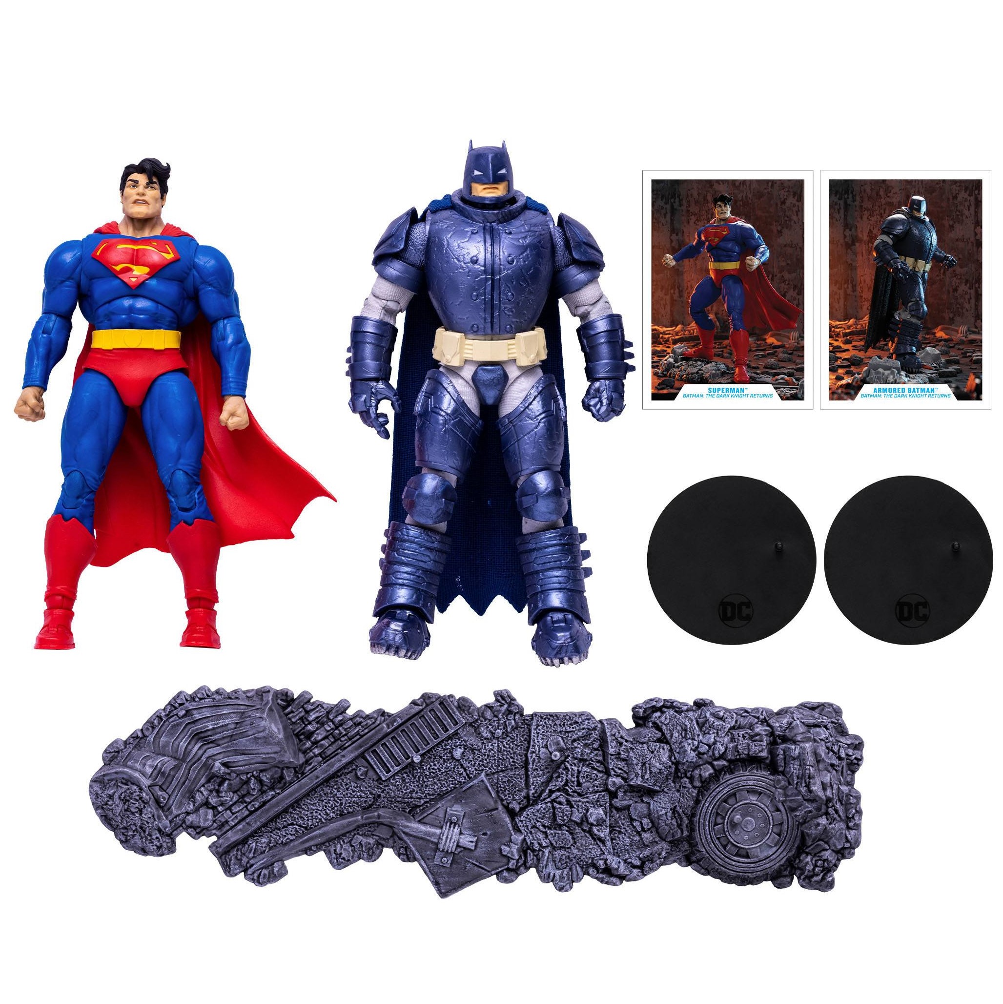Les deux super-héros DC comics s’imposent. En effet, ces deux figurines proposées par McFarlane représentent les deux géants : Superman vs Armored Batman. Car ici, Superman porte son costume de super-héros emblématique. Tandis que le justicier de Gotham a revêtu une armure. Un pack de deux figurines inspiré de The Dark Knights Returns.